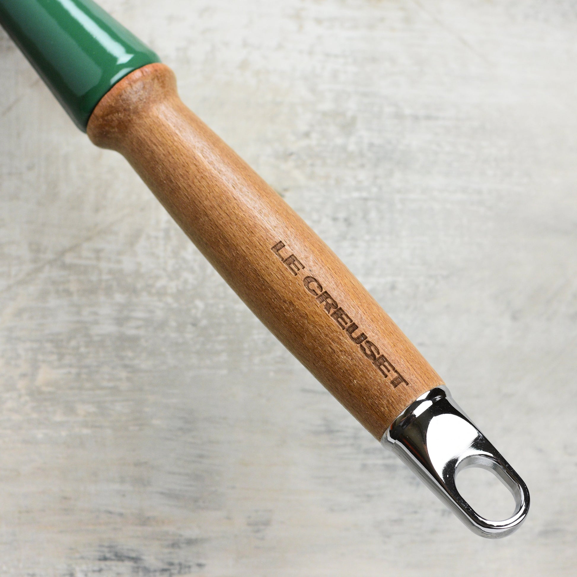• Ergonomic, durable maple-stained beechwood handle stays cool to the touch; designed for easy lifting from stove to table