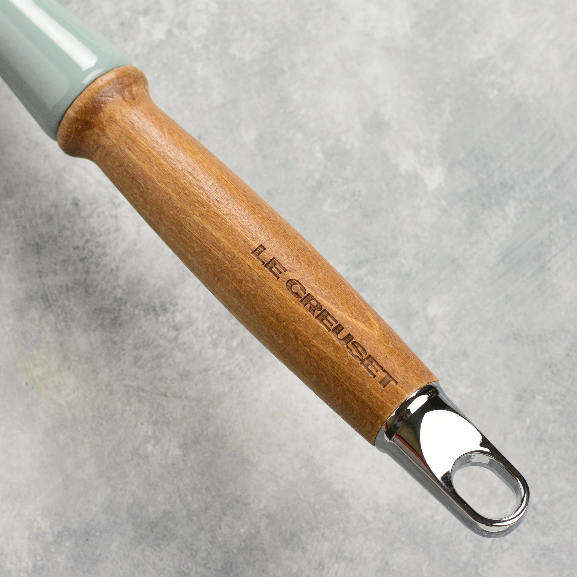 • Ergonomic, durable maple-stained beechwood handle stays cool to the touch; designed for easy lifting from stove to table