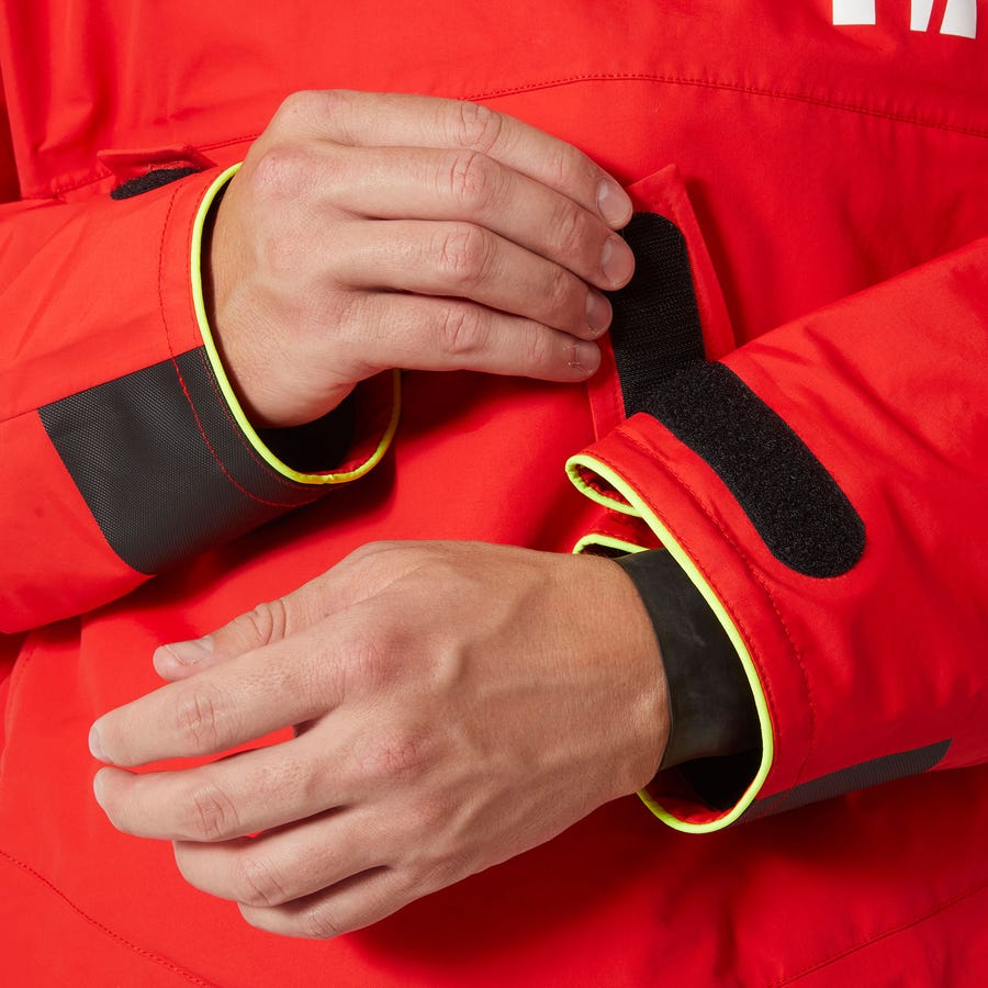 We used a 5-layer construction finished with super strong Professional fabric to create this high-end, waterproof and breathable smock top for ocean races. We added waterproof rubber neck and cuffs providing maximum protection from the elements at sea. You can adjust the length, waist, and pack away the hood for max mobility.