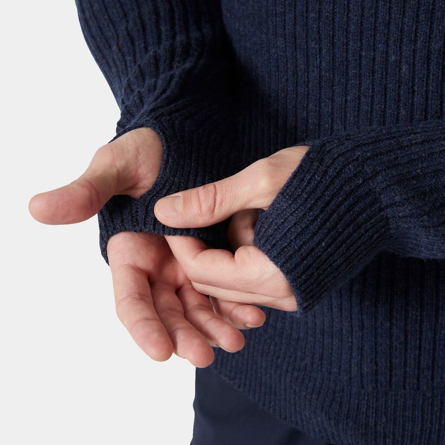 Here to warm you up this winter, our Men's Arctic Rigging Sweater is a blend of timeless style and high-performance design. Crafted with a super-soft wool blend in a rib pattern and featuring reinforced shoulder detailing, this sweater exudes functional maritime chic. Great for layering or transitioning through the seasons when you need a warm layer.