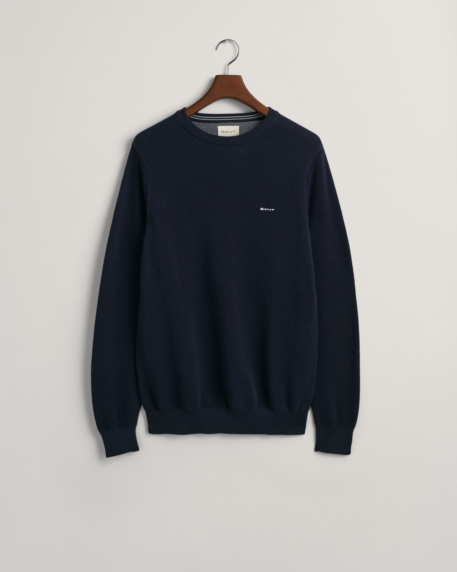 Men's Cotton Piqué Crew Neck Sweater - EVENING BLUE