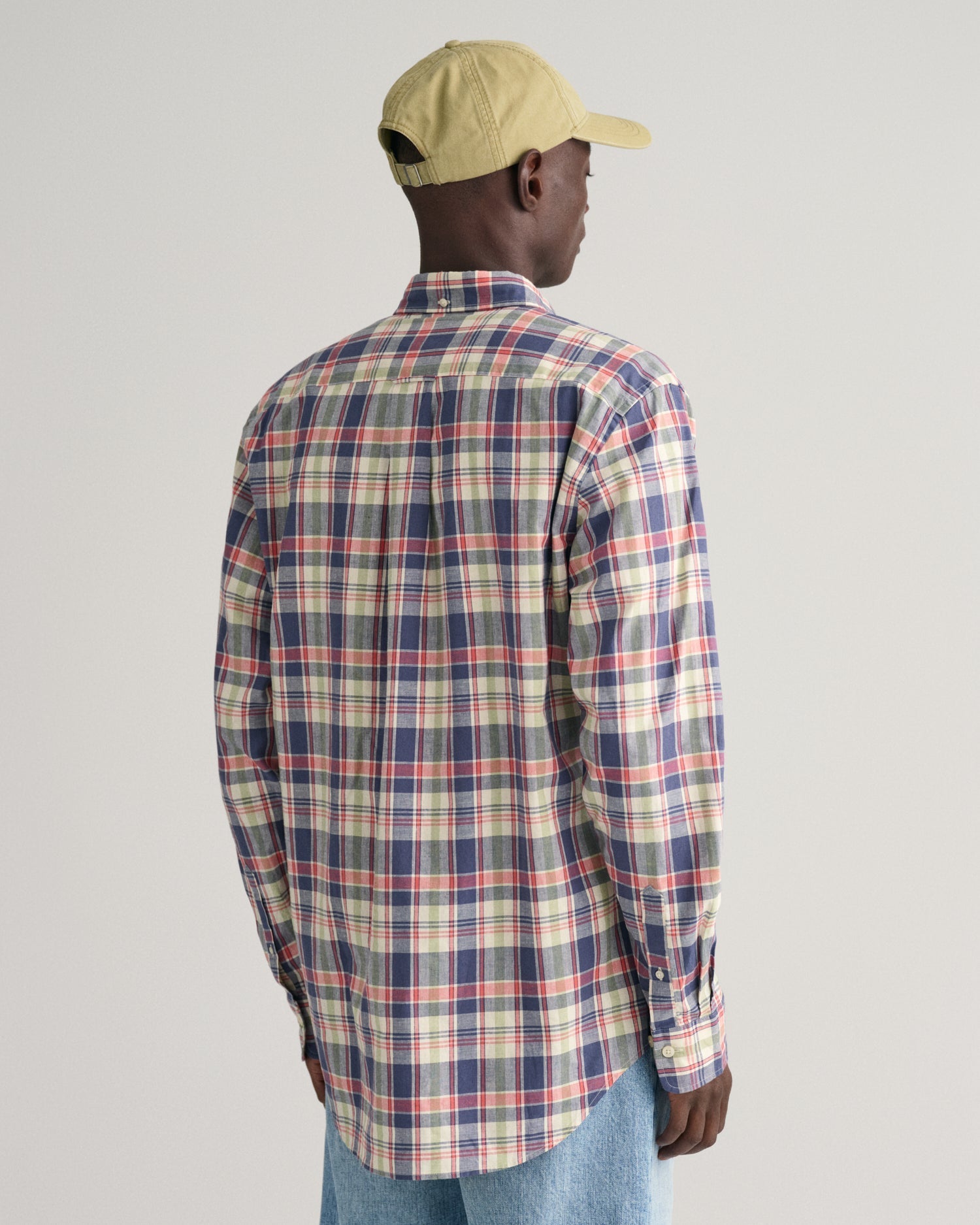 Made of a crisp linen-cotton blend, this regular fit shirt is light, breathable and airy. Patterned with yarn-dyed checks, it has a button-down collar, curved hem, a chest pocket with shield embroidery and a box pleat and locker loop at the back.