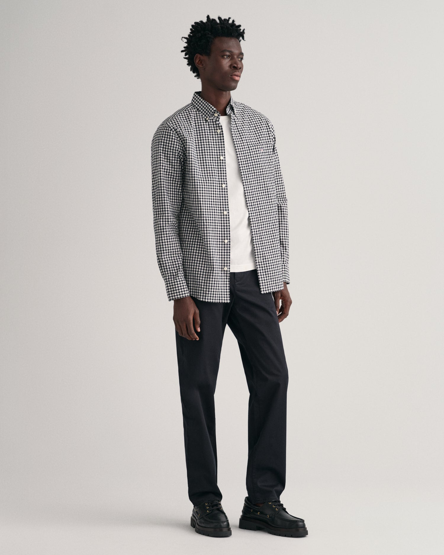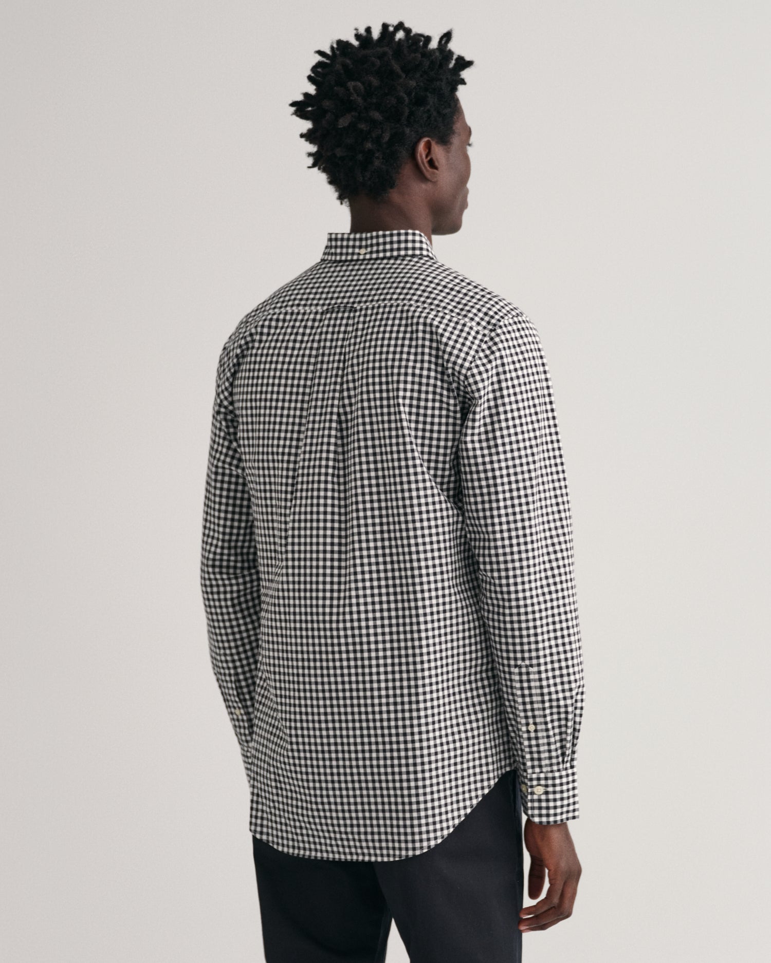 Men's Regular Fit Gingham Poplin Shirt - BLACK