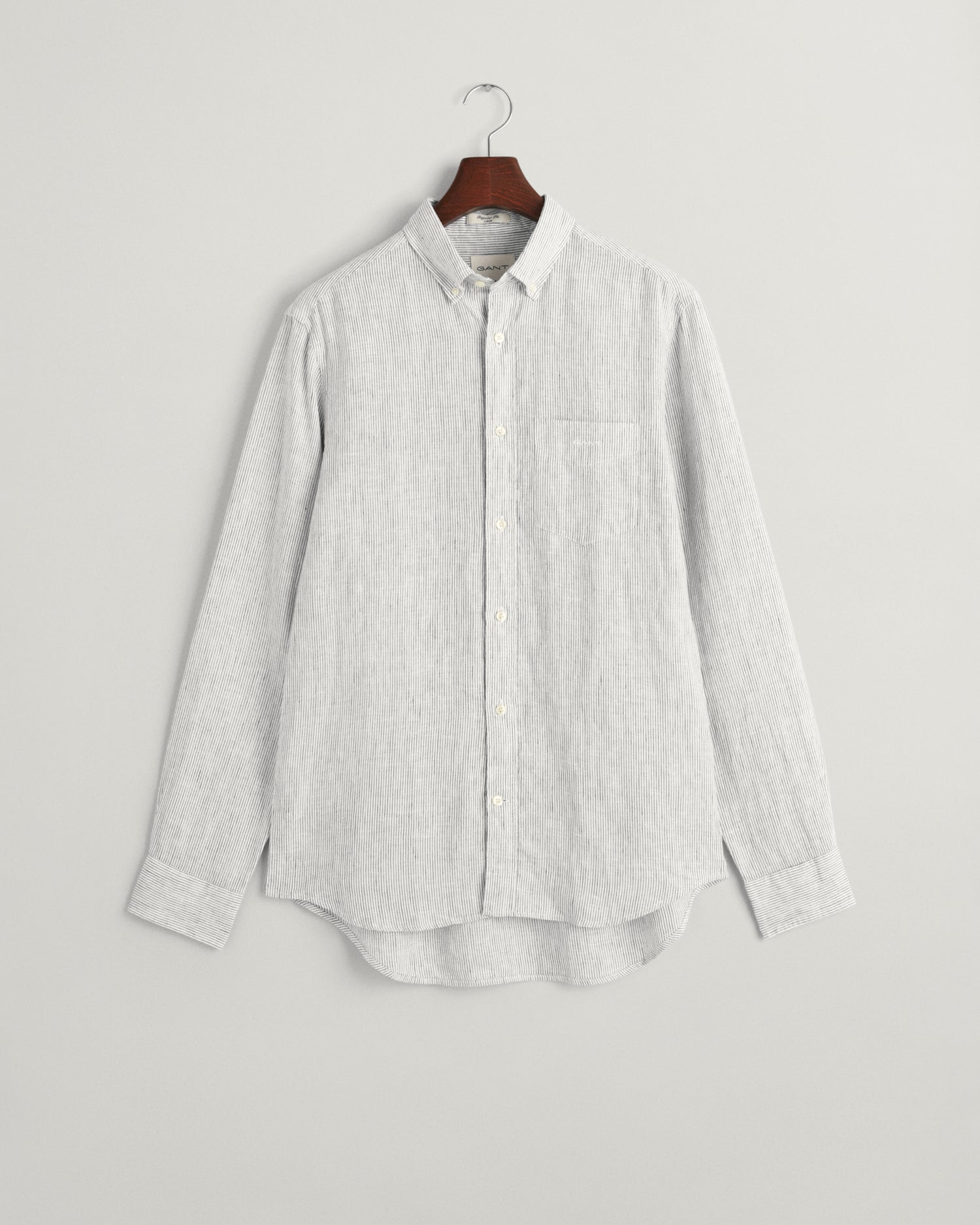 Made from 100% linen, a naturally breathable and lightweight fiber, this regular fit shirt has a crisp look that lends itself well to smart casual summer events. Crafted with an all-over striped pattern, it features a button-down collar, curved hem, a chest pocket with logo embroidery and a box pleat with a locker loop at the back. A versatile piece that pairs well with shorts, jeans and tailored pants alike, this shirt is a summertime staple that you'll wear for many years to come.