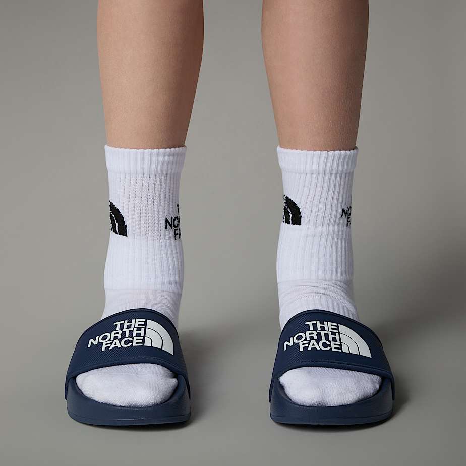 - With or without socks Up to you. Either way, the comfy mesh foam strap won't give young explorers blisters and the textured sole makes the Base Camp Slides III poolside ready.