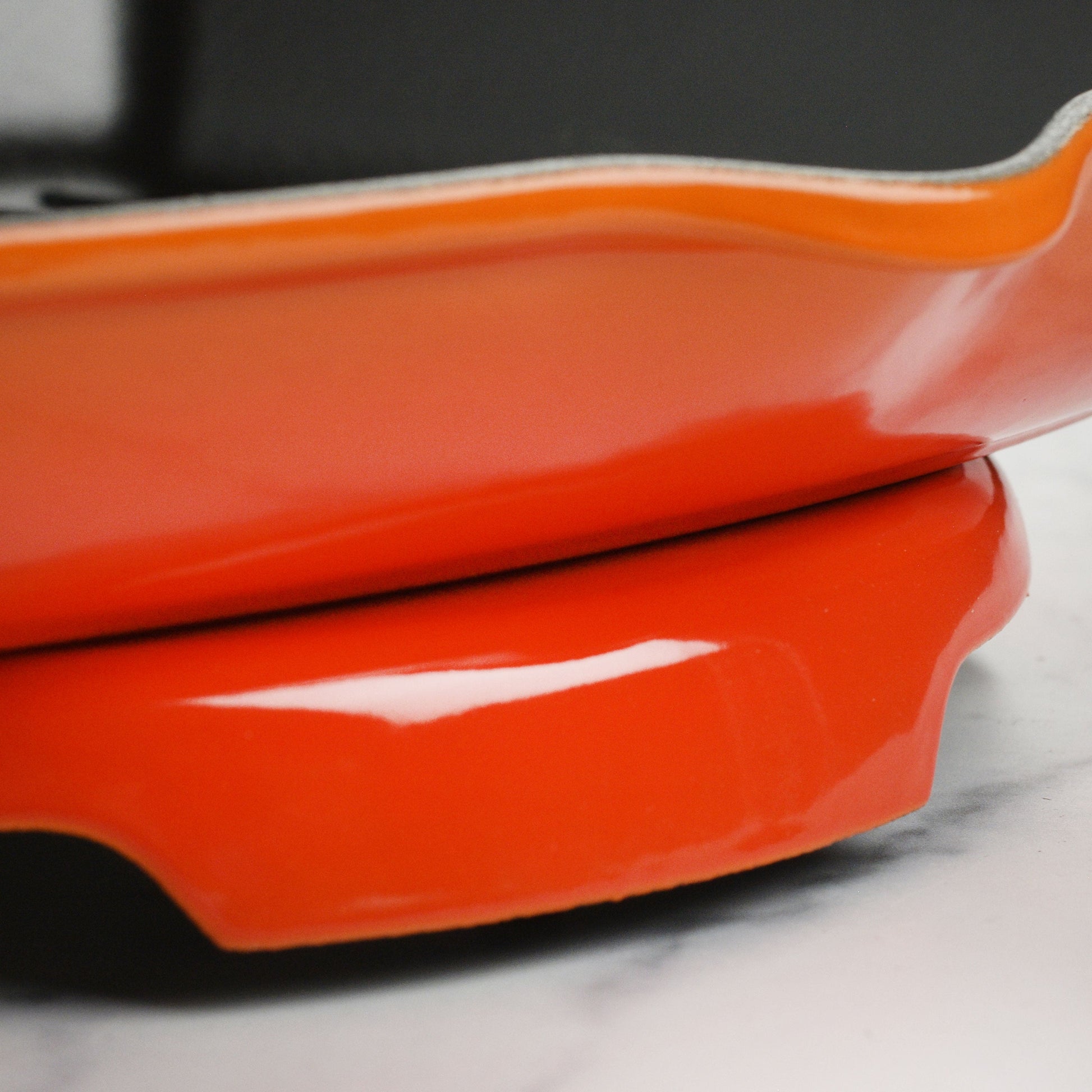 • Enameled cast iron and durable enamel resists dulling, staining, chipping and cracking