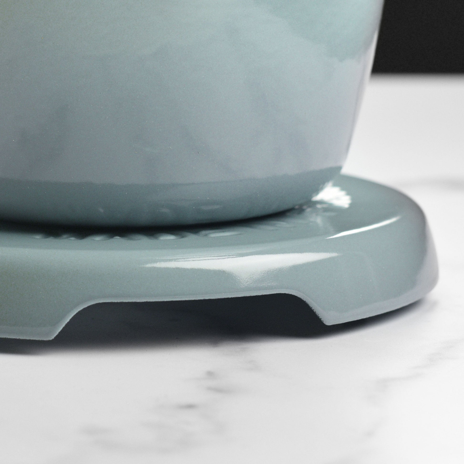 - Elevated design protects counters and tables