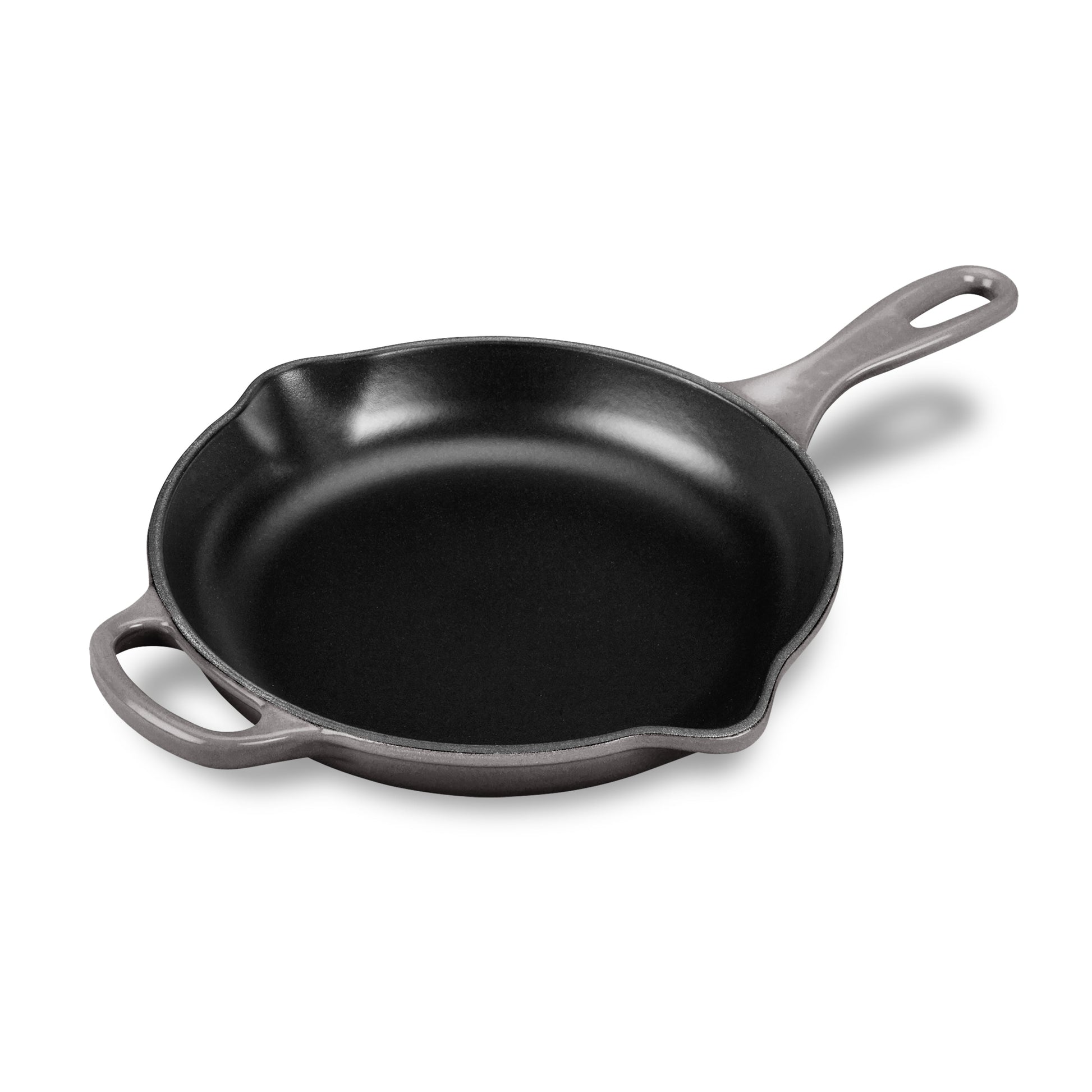- Cast iron handle and wide-loop handle designed for easy lifting and transferring; pour spouts are designed for pouring sauces and drippings without the mess