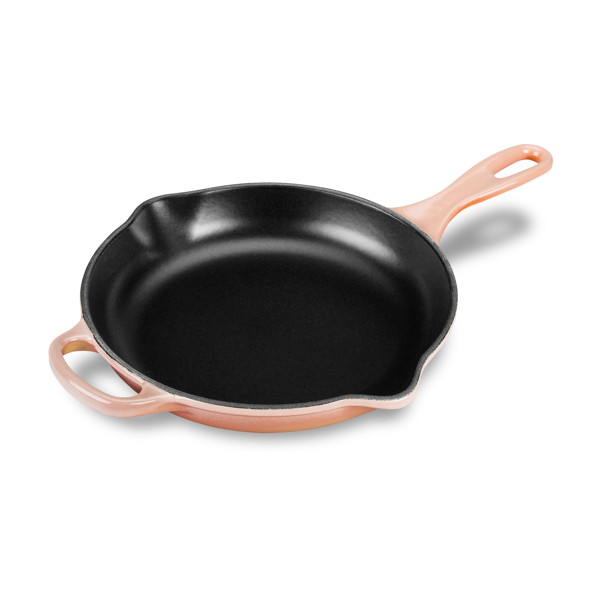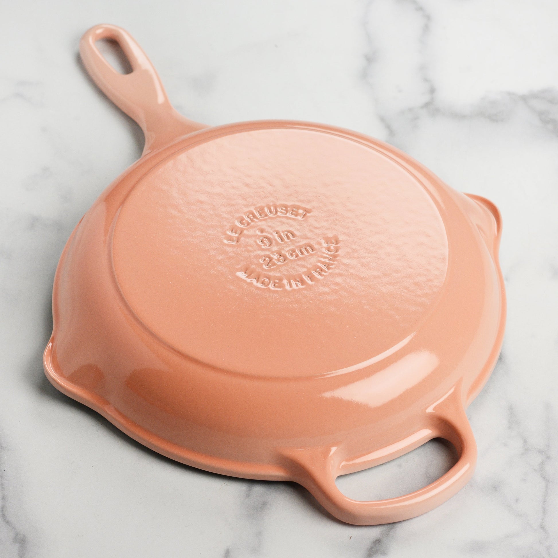 - Cast iron handle and assist handle designed for easy lifting and transferring; pour spouts are designed for pouring sauces and drippings without the mess