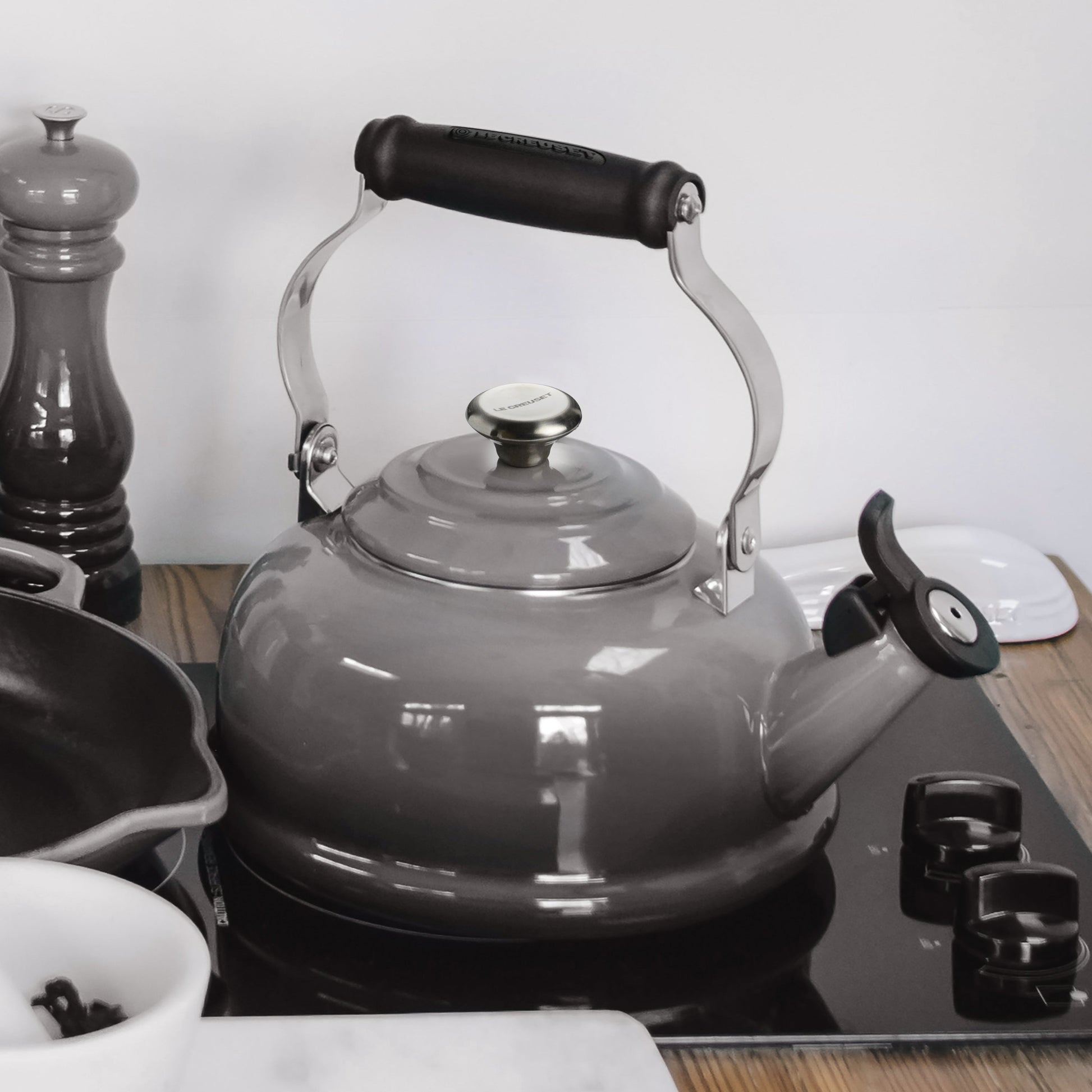 - Fixed single-tone whistle alerts when water has reached a rolling boil, and can be easily flipped open for pouring