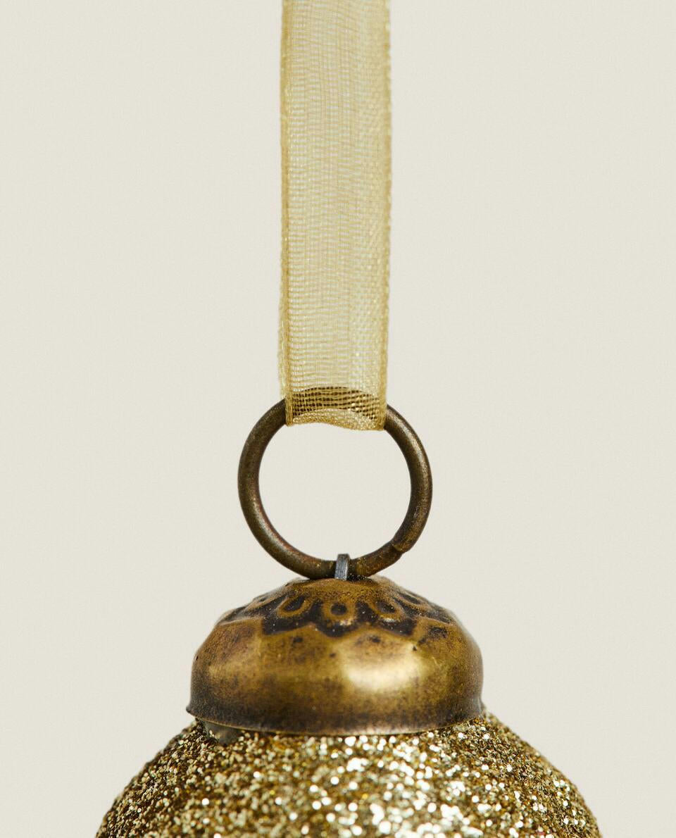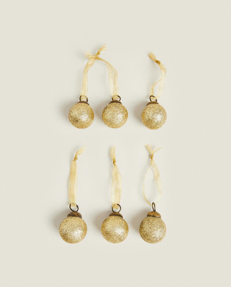 Glass Christmas tree bauble decorations with glitter.Pack of 6.