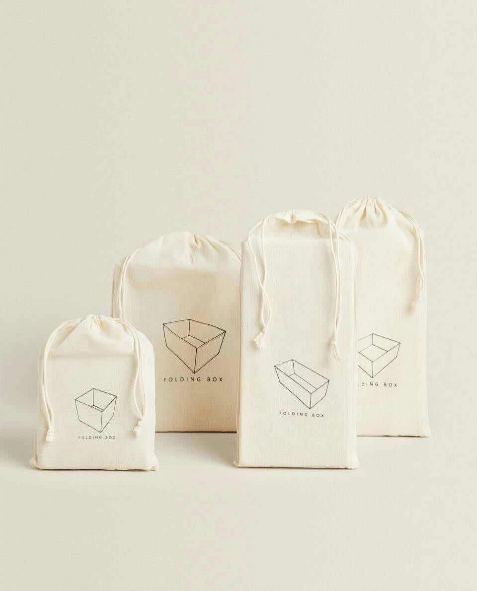 Folding box for storing garments and accessories. Made of cotton. Available in four different sizes and formats.