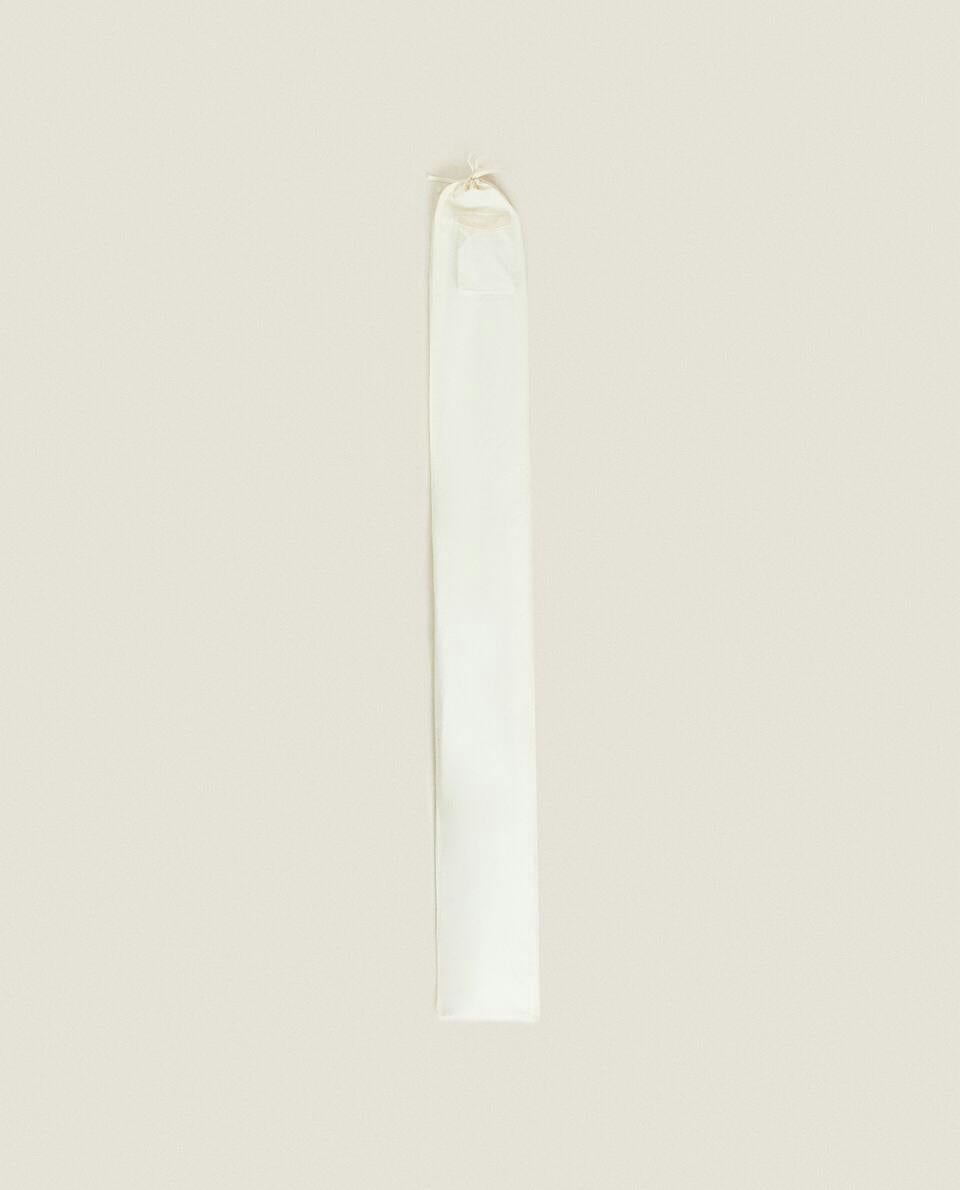 Rack for hanging clothing with metal frame and hook detail on the sides.